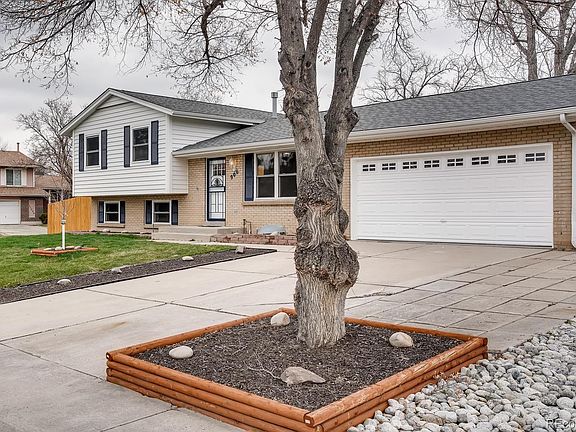 WOW!!! Completely remodeled! New electrical, Plumbing, Mechanical and Roof! New hardwoods on main level with new kitchen cabinets, concrete countertops, Stainless Steel appliances, Countertop depth Refrigerator and Eat-in Kitchen. The upper level offers 3 bedrooms w/new carpet, paint and doors. Upper level full bathroom has been completely remodeled. The lower level offers a large Family room with a Gas F/P bedroom and 3/4 remodeled bathroom! The basement is unfinished and would make a great Rec Room or storage. The backyard offers a enclosed patio and sun patio. The shed is insulated and has power. Located on a corner lot Cul De Sac. It is also Cherry Creek Schooling! Show and Sell!