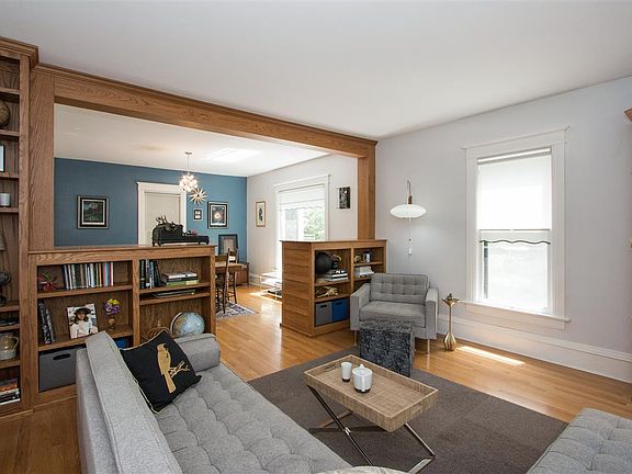 1900's CLASSIC beauty with gleaming wood floors throughout, original intricately turned oak staircase, large windows and an easy flow floorplan. Formal dining and livingrooms, lovely kitchen with butcher block island, gas range and white cabinetry. Comfortable family room with a wall of bright windows and built- ins adjacent to the spacious porch which adds another entertaining dimension. Three bedrooms on the second floor including a large master. Idyllic yard with detached, 2 car garage