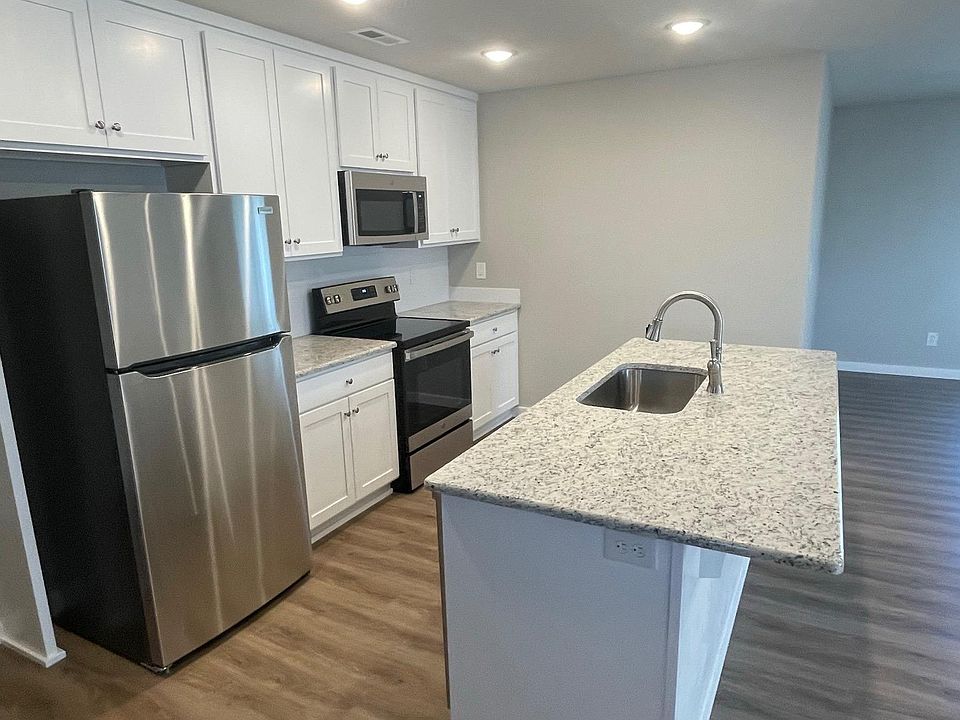 SINGLE LEVEL, NO STAIRS!! 3 bed, 2 bath duplex in upcoming neighborhood in Ozark, MO. Hardwood laminate flooring, granite countertops, and stainless appliances. The refrigerator, washer and dryer are included with the unit. There is a 2 car attached garage. Great school district and minutes away from HWY 65 for an easy commute! Don't miss out on this great rental opportunity! Owner pays for water, trash, and lawn care. Renter pays for media, gas, and electric. Pets are allowed with a $300 dollar pet fee per pet. No more than 3 pets permitted.