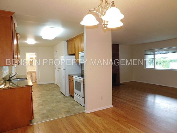 This spacious ranch style 3 bedroom 2 bathroom home boasts hardwood floors throughout, wood burning fireplace in living room, large windows, fully fenced yard and so much more! Living room is open to the dining room. Sliding glass door in dining room opens to fenced back yard. Kitchen includes range, fridge, built in microwave, dishwasher and nook. Freshly updated kitchen to include cabinets and counters! Access to full bath, garage and back yard from kitchen area. Down the hall are the 3 bedrooms and main bathroom. Inside the garage is your laundry hookup and basin. Garage also has door to back yard. Tenant is responsible for all utilities and lawn care at this property. This home is offered on a 12 month term. Mature pets welcome at this property. Breed and size restrictions do apply! Additional pet rent of $25 per month, per pet. Increased deposit of $500 for first pet and $250 per additional pet. HOW TO APPLY: Visit our website www.bensonco.com. Find this home in our list of vacancies and click on the "Apply Now" button. THIS PROPERTY IS MANAGED BY: Benson Property Management, Inc. 503-666-1988 ph 503-665-1661 fx www.BensonCo.com 619 NE Roberts Ave., Gresham, OR 97030 Rental Terms: Rent: $1,795, Application Fee: $50, Security Deposit: $1,700, Available Now Pet Policy: Cats allowed, Dogs allowed This property allows self guided viewing without an appointment. Contact for details.