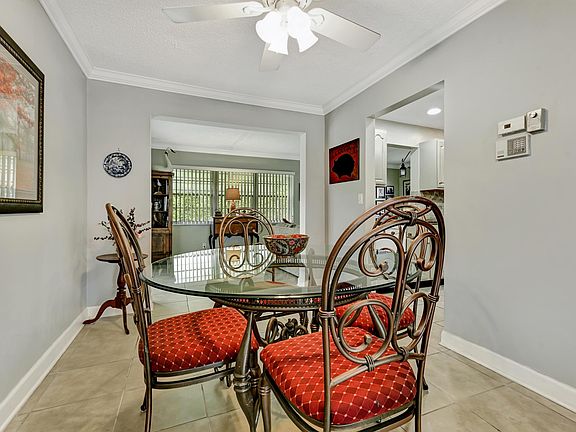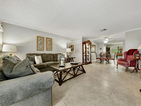Lovely 2Br/2Ba Regis model on oversized pie shape lot with spacious back views. Front porch with awning to sit and and enjoy thegulfstream breezes. Kitchen cabinetry all replaced with stone backsplash and granite countertops. Extra cabinetry. Double deep sink with pull out faucet. Updated appliances. Bathrooms both updated. Lots of closets in this model. Crown molding and 4 ceiling fans. Florida room plus screened porch with roll-ups. Active community with 3 clubhouses, 3 heated pools & FREE 18HOLE PAR 3 Golf course...Minutes to shopping and ocean beaches... Paid up recreation lease in full. This home is a MUST SEE,,,