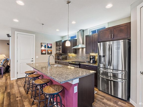 Welcome to the Greenbridge community! A stand alone 5 bedroom home conveniently located close to parks, cafes, SeaTac airport and with easy access to Hwy 99 and I-5. Upgraded LVP flooring throughout. Upstairs offers spacious primary en-suite w/vaulted ceiling & walk-in closet. 3 more bdrms, full bath & laundry upstairs. Lower level has a good-sized guest bdrm w/its own 3/4 bath. Oversized 1-car attached garage w/tons of storage. Built in wall speakers, A/C, double glass sliders lead to covered patio and pet-friendly no maintenance yard. Spacious kitchen with massive island and dining area includes newer SS appliances, beautiful granite tops in kitchen and bathrooms. Built in tech center. Fresh ext. paint. This home has it all!