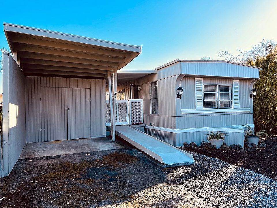 This beautifully remodeled home is on a large, private and quiet lot, that offers plenty of space for gardening, relaxing and enjoying time with pets and kids in a safe outdoor environment. The ramp at the entrance offers disabled access for anyone living or visiting. I love the quiet culdesac and the home is beautiful inside and out. PROPERTY FEATURES: - Covered car port - large shed for tools, crafts, storage, etc. - New flooring – carpet in bedrooms and luxury vinyl throughout the house. - Forced air heating. - New light fixtures. - Fresh paint inside and out! - Newly remodeled kitchen and refinished cabinets! - appliances included: dishwasher, refrigerator, oven/range, microwave, washer/dryer - Kitchen pantry - Large master bedroom - 2nd bedroom offers built-in dresser. - Full bathroom with shower/bathtub. - Newly remodeled bathroom - Large covered deck with wheelchair accessible ramp. - Back door and small deck. - Fully fenced-in backyard with big yard on both sides of the house! - Patio area with fire pit. - Furniture & accessories are included! - Quiet culdesac in nice park with friendly neighbors. - Huge, private backyard with plenty of space between next door neighbors! LOCATION: Alder Terrace is a quiet family park, where everyone is kind and keeps to themselves. It's very safe, and we've never had a problem even leaving things out. No one touches anything, and we've never had or heard of an issue at this park! The park manager, Mary is very nice! For questions or if you'd like to see the house, please call/text Diana at 503-888-4194.