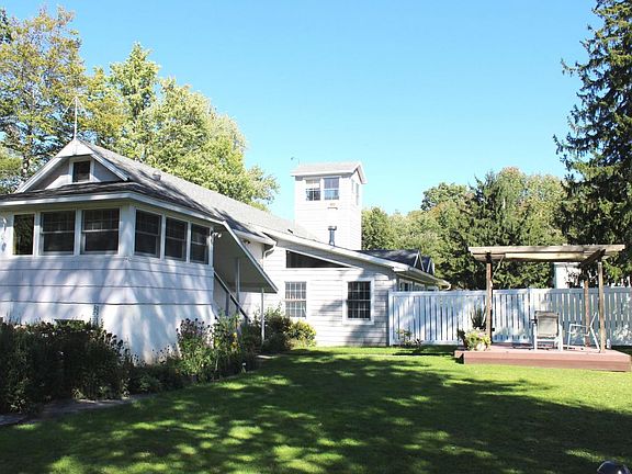 PRICED TO SELL- Don't miss this historic home with a look out tower for amazing and scenic LAKE VIEWS. This 3 Bedroom 2 full bath home features a large Eat-In kitchen, Open Floor Plan, Hardwood and tile throughout, radiant heat in floor heat on first floor with a gorgeous Master Bedroom Suite with Full Bath, Awesome 3 Season Room, and an AMAZING Tower offer Panoramic views!!! Private all fenced in backyard with Pergola, Perennial Gardens, Historic Barn, and Pottery Shed.