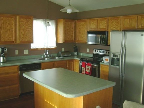 Bright and open 3 bedroom, 2 bath ranch home with cathedral ceilings, gas fireplace, island kitchen and new flooring in the living room and kitchen. 2 lower level rec rooms, lots of storage and a 2 car garage. Baths upgraded with solid surface counters, new flooring and newly tiled entry. Fenced back yard, patio and ready to move in. Home warranty included.