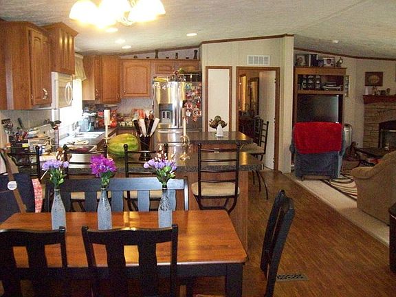 Very nice large manufactured home with 4 bedrooms, two and a half bathrooms, living room with fireplace, dinning room, kitchen, and laundry room. It come with approximately 1 acres of land a septic system and public water. Many extras with this one a must see. Come make us an offer.