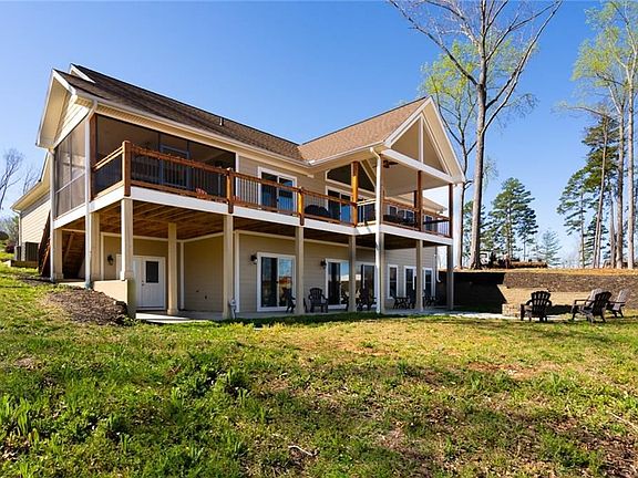 This beautiful Lake Keowee 5 bedroom, 4 bathroom home is located in the gated community of Marina Bay. The living room features a beautiful stone fireplace, built-in cabinets, wood floors, and lake views. The kitchen features granite countertops, tile backsplash, stainless steel appliances, and richly stained custom cabinets. The breakfast bar allows the family chef to remain a part of the conversation while preparing a meal. The dining room is open to the living room. Your sizable master bedroom suite is located on the main level and tucked privately away from the other bedrooms. The second bedroom on main floor opens to screened in porch. The laundry / mud room is conveniently located next to the garage and includes a sink and plenty of storage. The master bath includes double sinks, a floating glass shower and a large walk in closet. Downstairs, you will find a second living room with a wet bar, an ensuite bedroom, as well as two other bedrooms. The lower living area opens to the backyard with plenty of green space, a fire pit, and sandy beachy area to the lake. Walk out 528 Sq. Ft unfinished basement. Downstairs floors have an epoxy finished floor. The approved L shape dock is on the installation schedule before May, 2022. As a resident of Marina Bay, you will have access to a private golf cart path to Keowee Marina to enjoy the Tiki-Hut. Within minutes of Clemson University, healthcare and shopping.