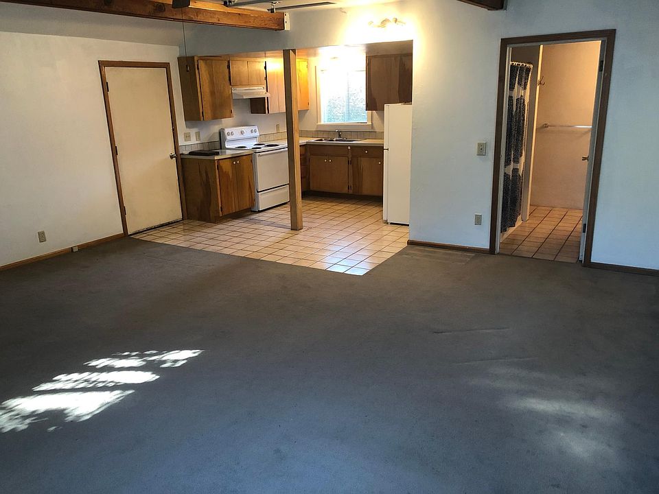 FRIENDLY NEIGHBORHOOD STUDIO! Cute and spacious studio with approximately 600 square feet of open space. Full kitchen with stove and refrigerator, full bath AND washer/dryer included! Parking for two vehicles and small front yard. Don't miss out on this perfect studio for 1-2 people! Email for details or tours. 1 year lease. Small-Med pets allowed. Owner pays for landscaping.