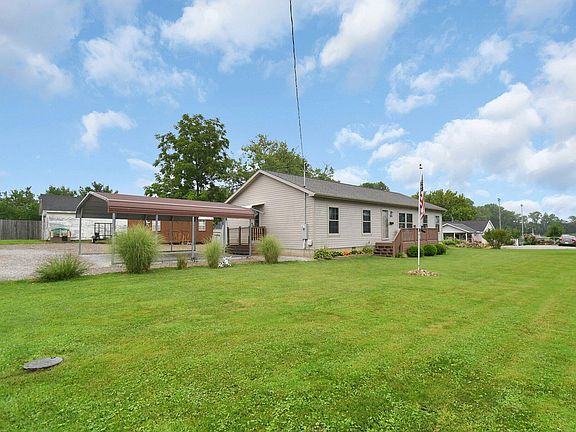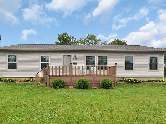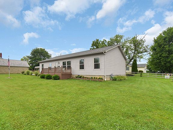 Nothing to do but move in! The open concept living, dining, and kitchen area features a large island with stone accent and built ins. There is also a large pantry closet and patio doors off the kitchen leading to the fenced yard. One floor living with a spacious mud room at the side entry. The Owner Suite offers a dual vanity in the bathroom and walk in closet. Two additional bedrooms and a full bath on the other side of the house. Enjoy entertaining friends around the firepit or on the deck all summer and fall! This modular home has upgraded 2x6 walls and a high roof peak. There is a sump pump in the crawl space with large access (outside) and gravel and plastic. The large 12x20 shed features a loft for additional storage. All electric ($139/month on budget plan).
