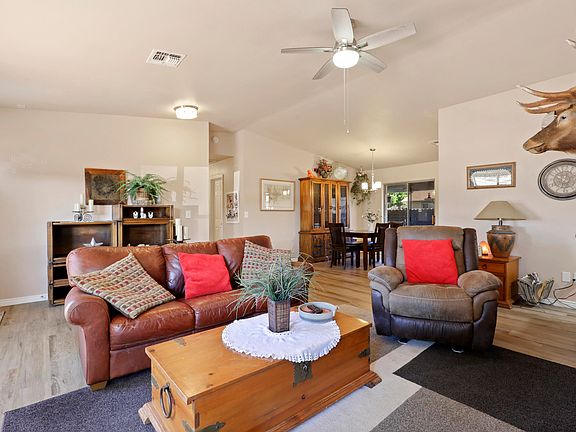 Single Level Home in Trailwood with RV Parking! This 3 bedroom, 2 bathroom, home features 1,260 sq. ft., a 2 car garage and 2 large storage sheds. The living room has vaulted ceilings, laminate wood floors, and great windows for natural light. The kitchen has knotty pine cabinets, a gas range, pantry, and beautiful epoxy wood countertops. The master bedroom features private access to the covered patio, a full bathroom and walk-in closet. You'll love the covered patio in the fenced backyard perfect for extra entertainment space.
