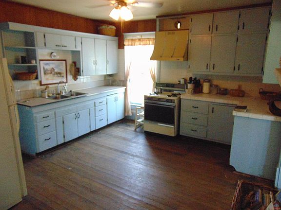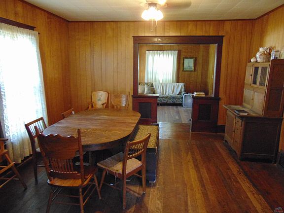 Tons of potential with this 1940 Dutch Barn style home! Over 2000 sq ft 4 bedrooms, 2 1/2 baths, 2 living spaces, formal dining room, unique corner fireplace and a sunroom of the kitchen. Sellers have brought back the original hard wood floors though-out and with a little TLC they could be amazing! This property is completely fenced with gates on all sides for access, you will enjoy the fruit trees and the grape vines as well as the huge yard ready for you to enjoy. Lots of storage in this home including an old coal room and a 2 car detached garage all on approx 3/4 acre. ATV riding trails and Truman Lake boat launch just minutes away. Come check it out!!