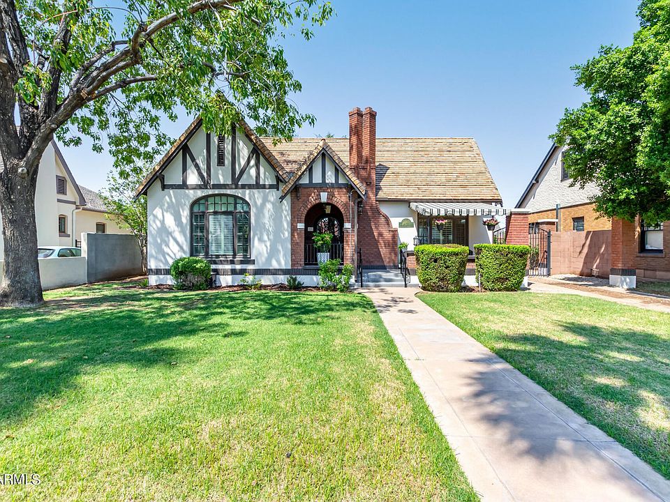Looking for the charm of a historical home, but with all the laborious updates done This IS IT!! Introducing this Tudor-style FQ Story Historic Neighborhood home, which features a separate casita, & mature landscaping! Discover a cozy interior space w/plantation shutters, designer palette, hardwood flooring, & lots of natural light. Wood-burning fireplace in living area. Formal dining area w/chandelier & direct backyard access. Cook your favorite meals in this remodeled kitchen, equipped w/ample cabinetry, quartz counters, SS appliances, tile backsplash, pantry, wine fridge, and pendant light over the prep island. Home has recently had new cedar shake roof installed, as well as fresh exterior paint, & front porch shade. Separate remodeled casita is great for visitors or extra spac