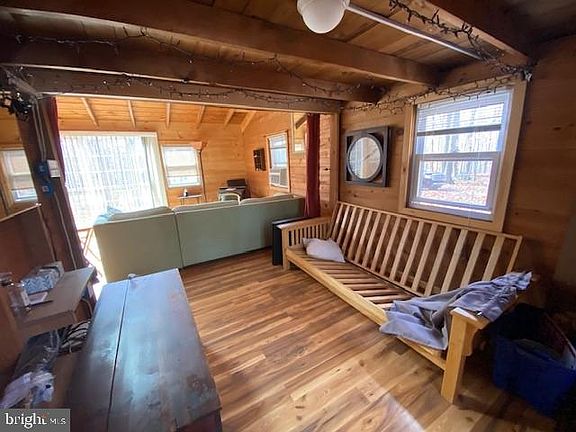 If you crave peace, quite and tranquility then you will love this full escapism cabin in Bucks County PA. Located beautifully within a private 137 acre community you'll find this affordable cabin positioned on a prefect sunsoaked lot. Schanbels' Woods is a private community with residents from all over the world coming to enjoy nature and quiet get-a-way from a crazy world. Here you'll find nature trails, 3 ponds and community open space. Access is available 12 months a year with a limit of 182 days max living time per year. Roads and common area are maintained 12 months per year. The cabin consists of 2 bedrooms on the second floor, a generously sized living room with vaulted ceiling and sliding glass doors out to a 19' x 10' deck. A country kitchen and full bathroom. Interior plumbing has been redone. 100 amp electrical service and insulated walls. Electric baseboard heat. All of the furniture and personal effects will be included in the sale of the cabin. Road plowing and trash service is included in fee. Only moments from Lake Nockamixon, 20 minutes to PA turnpike, 1 hour to Philadelphia and 1.5 hours to Manhattan yet light years away from any hustle and bustle! Cabin is not intended for year round residency. No real estate taxes. New owner will enter into a yearly ground lease with community. This once in a lifetime opportunity may very well be your ideal home away from home! PLEASE NO DRIVE BYS- APPOINTMENT ONLY- GATED ACCESS.