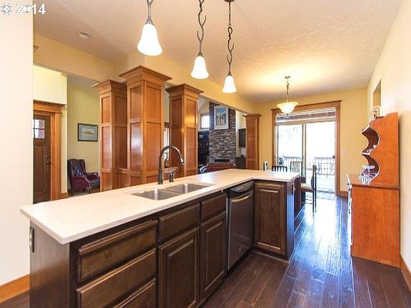 Modern Craftsman w/ all the touches you love. Gorgeous woodwork & flooring, gourmet kitchen, rock-faced gas fireplace, master suite, & formal dining room. Lovely front porch, oversized garage, fenced & landscaped yard. Close to Portland & Hood River.