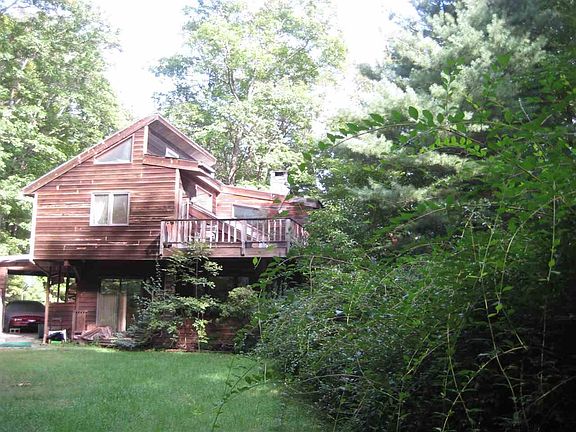 Bright and sunny cedar sided contemporary on 5 wooded private acres with seasonal mountain views. Great location within walking distance to Wilson State Park. The present owner/architect has designed and built this wonderful home. The over 2,000 sq. ft. of living space has 3 bedrooms and 3 full baths, a large country eat-in kitchen, a formal dining area, a terrific livingroom with a gorgeous stone fireplace, oak floors, vaulted ceilings and skylites. The bedrooms all have access to their own private decks.In addition to this wonderful space is 600 sq. ft. of finished basement with ground level access to a lovely rock walled garden area. This area has a bedroom, nice size office and utility room. This is a classic rustic contemporary that has loads of charm and good space for living and entertaining.