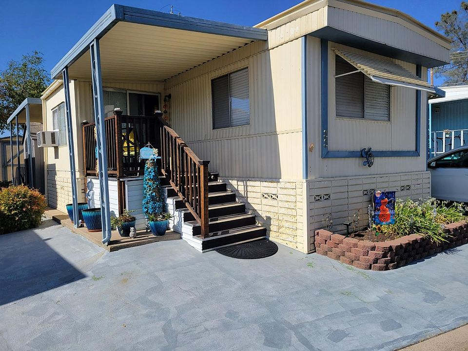 Wow! So peaceful and a super location. What a great home. So warm and cozy. This home has personality. What is nicer than Sunflowers? Front bedroom with private 1/2 bath. Large living room with expando.. Berber carpet. New stainless steel refrigerator, new sink, new water heater, furnace, Pex piping, New gas range, New range hood, new disposal, etc. New carport steps... front deck and steps, New Kohler toilets. Entertainment center is included. Pantry cabinet in hallway. Stackable washer/dryer included. 2 good size storage sheds. Utility cabinet in hall. Low maintenance lot in Senior Park in walking distance to Folsom Lake, shopping, restaurants. Retire here and call it Home. 2 storage sheds.. room to enjoy hosting a barbecue. Great setting with 2 decks... front and back.