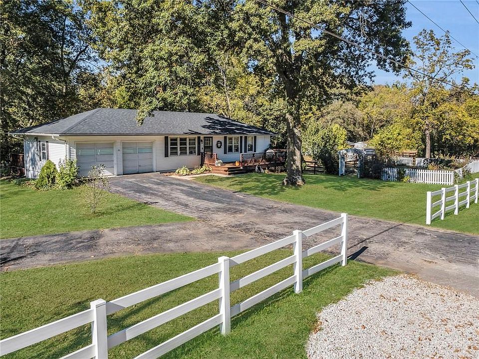 Live the Hobby Farm dream in the city on this 2.36 acre property that backs to the beauty of the Little Blue River! Moments from the Rock Island biking trail and the Blue Trace trail, this 3 bedroom 1 bath ranch home with a sunroom overlooking your wooded backyard has an additional newly renovated in 2023 art studio/guest house that adds a potential bedroom, half bath, and outdoor shower to the property. Use the additional space as a studio, or potential rent it as a short term rental for added revenue~the possibilities are endless! Enjoy abundant wildlife outside your doors~ Bald eagles and hummingbirds nest in the surrounding trees, deer and fox frequently pass through, and the ducks, chickens, and sheep farm animals are also available. You'll love country living that is also conveniently located close to nearby shopping in Lee's Summit Fair and Streets of West Pryor. Lovingly updated with meticulous care, this property is ready for its new caretakers.