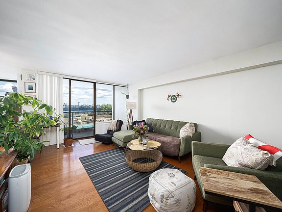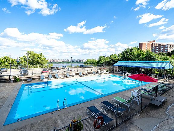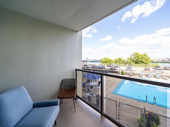 Soak in the sun and direct views of NYC from the pool or your private balcony! This spacious 815 sq.ft. and bright 1 bed/1 bath is conveniently located on the Gold Coast, a short 15 min ride via bus or ferry from NYC. It is near James Braden Park (1 block), Bergenline Ave with cuisines from all over the world, and River Rd with all the shopping you need and the SOJO Spa! All walking distance or a short car drive away. The apt was just freshly painted plus the bathroom remodeled w/ new rain/ waterfall shower head. Other bonuses: 24-hour Doorman, gym, laundry room down the hall, new kitchen and high end appliances, hard-wood floors, big screen Smart tv in living room, King size bed. All utilities included. Parking is available for additional $125/month if needed. Offered PARTIALLY FURNISHED. Sorry No pets in building.
