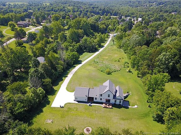 ATTENTION! SPECTACULAR Custom Built Home in 2013 by Compass Project Management in Floyd County on nearly 6 Unrestricted ACRES, PARK LIKE setting, 40X45 Barn, Pond, and OVER 2300 sq ft of living space! You will immediately notice the attention to DETAIL and QUALITY of this Beauty! This wide open floor plan boast high ceilings, barn wood accents, custom vintage light fixtures, gas fireplace with custom built-ins. Beautiful hickory hardwood flooring throughout entire home, custom built-in foyer bar, QUALITY custom kitchen cabinets w/ built-in appliances, marble backsplash, and butler's pantry! The open concept living space is great for entertaining and with entertaining in mind the owners installed a whole home audio, thermostat, 3 wireless access points, and surveillance system which can all be controlled from a smartphone. The master suite is beautiful with walk in closets, dual vanity, and large walk-in shower! There is an unfinished walkout basement that has been roughed in for a bathroom, bedroom, and home entertainment room provides plenty of storage and room to grow. Outside you will find 2 covered porches, a spacious 2 car garage, All on a peaceful tree lined 5.5 acres just 20 minutes from downtown Louisville. This is a MUST see!