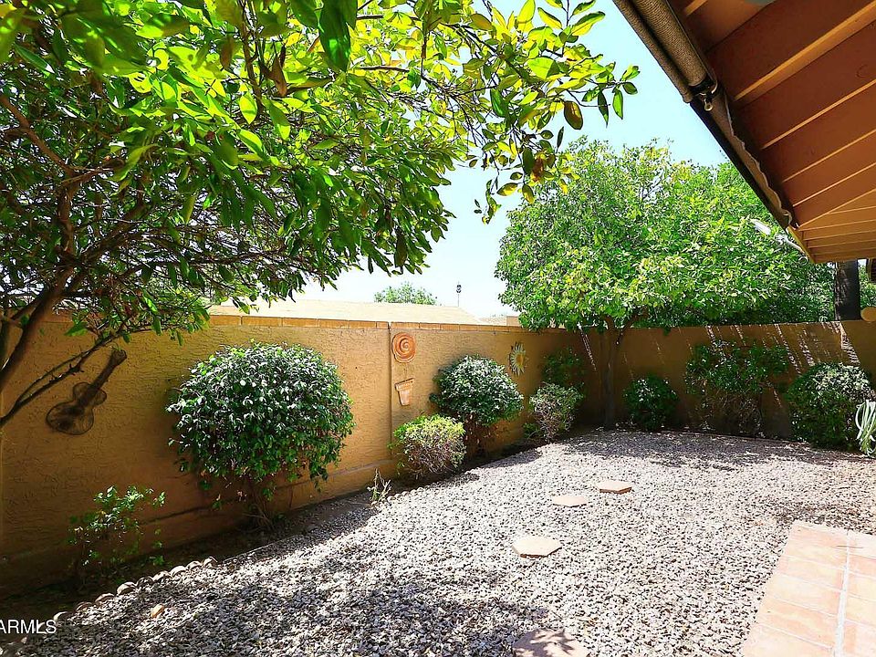 Welcome Home! Adorable 2 bedroom, 2 bath with 2 car garage. Freshly painted throughout! New roof! (July 2025), Kitchen updated with granite countertops, newer appliances & light fixture. Primary bedroom has beautifully updated walk-in shower, easy care laminate flooring, and french doors to private patio & yard! Second bedroom set up as home office/guest room with built-in window seat. Hall bath also updated tub with tile surround & newer lighting! Solar panels with assumable lease - Association fee is low compared to many other communities includes front yard landscape maintenance and 2 community pools! Easy access to 101, shopping, restaurants, hiking, schools, & parks!
