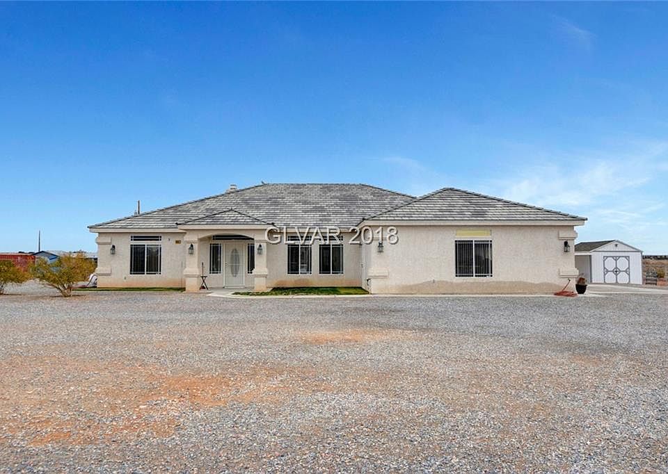 Gorgeous mountain views in a rural setting next to BLM land! Custom home built in 06 that boasts 1 acre near the Cali line, RV Hookup, granite,RO in kitchen, Kinetico H20 Softener, walk in pantry, custom cabinets, huge master w/ big walk in closet, large garden tub, handicap bars in shower, full 6' chain link fencing w/3 gates. Garage is almost 1000sq ft & has finished floor, clean 1/2 bath and custom work benches. Insulated shed & large patio. V