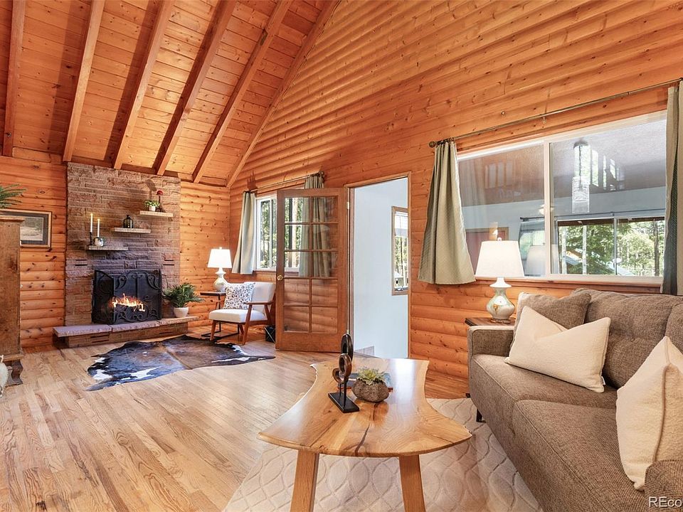 PRICE IMPROVEMENT! Dreaming of a rustic mountain cabin with modern updates? Welcome to this charming home, perfectly situated on a parklike corner lot in beautiful Conifer. Step through the mudroom into the warm and inviting living room, featuring hardwood floors, a cozy wood-burning fireplace, and vaulted ceilings that open to a loft—ideal as a bedroom, office, or creative space—complete with its own private balcony. The spacious primary suite offers fresh paint, new flooring, dual closets, an updated en suite bath, convenient laundry area, and private access to both the back patio and front yard. The updated kitchen boasts new flooring and counters, with a large, separate dining space for gatherings. A true bonus is the oversized detached 4-car garage with workshop, 220-volt service, and car lift. Above the garage, a spacious studio apartment (ADU) provides endless possibilities—featuring a kitchenette, bath with shower, open studio living area, and abundant storage—perfect for guests, multi-generational living, or short-term rental income. Additional highlights include paved asphalt driveways with ample parking, RV storage beside the garage, and a serene setting close to hiking and biking trails. Located just minutes from shopping and amenities in Conifer and Evergreen, this property combines mountain living with convenience. Don’t miss this opportunity—schedule your showing today and experience all that 9061 Rex Lane has to offer!