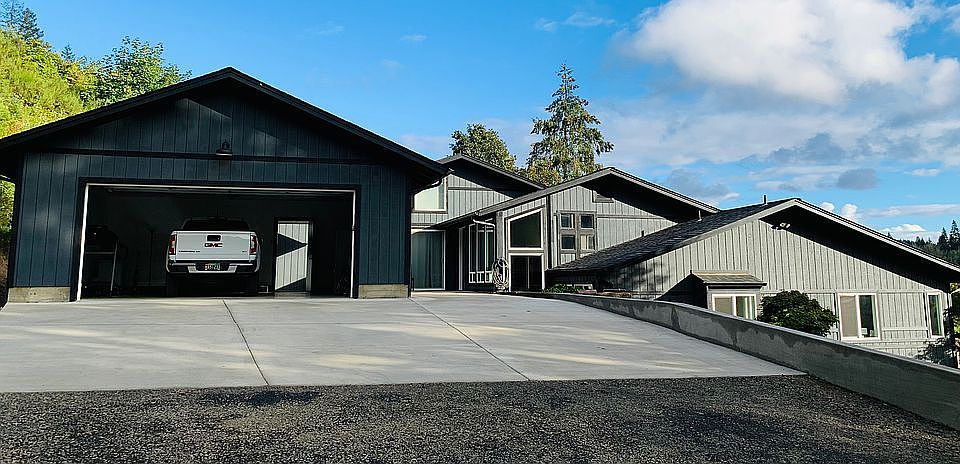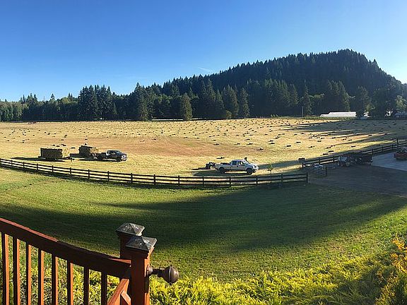 Secluded ranch in a hidden valley with 36x36 barn and cement slab. Incredible views from 800 square foot deck and every room. Granite, Hardwood floors, Travertine, Stainless steel appliances. Water rights to Long Tom river w/pump, pipe etc. incl.