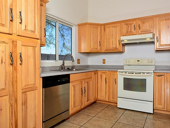 Great home in quiet neighborhood! Home located on large lot, backing up to desert with awesome Mountain Views!!Updated Kitchen with SS appliances opento spacious eating area! Vaulted ceilings,fans thru out plus 2 car finished garage with freezer outlet.Near DMAFB and Pima College.