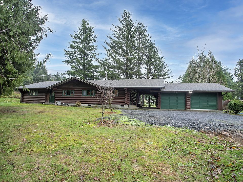 Experience the charm of a tailor-made log residence nestled in a picturesque rural environment. This exquisite dwelling, situated on 1.96 acres, boasts a generous floor area with 3 bedrooms and 2 bathrooms. Additionally, the property includes a 12 x 14 ft. structure equipped with power and heating, a pole barn, and a workshop with a carport, complemented by a detached two-stall garage. Indulge in the tranquility of the outdoor space, featuring a creek, flourishing fruit trees, majestic evergreens, and a beautiful yard. The interior of the house has been enhanced with luxury vinyl flooring, a forced air furnace for efficient heating/cooling, and updated electrical panel with 30 amp generator hookup. The master bath is a haven of relaxation, featuring a sunken jet tub complete with a bidet.The residence offers an open and spacious floor plan, providing a welcoming and comfortable atmosphere for residents and guests alike.