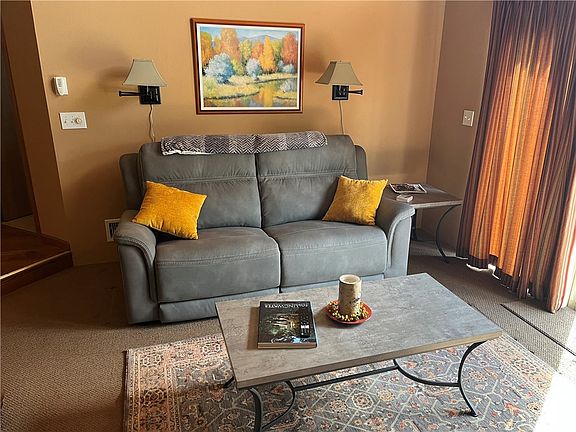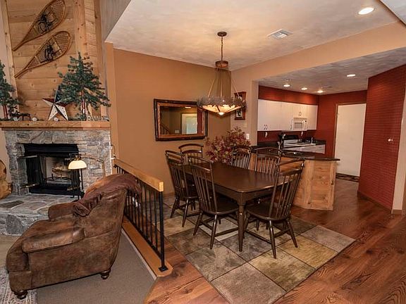 This three bedroom Spruce floor plan is located close to the pool in Woodridge and has a heated garage. The first floor features the kitchen and dining room both with engineered flooring, living area and master bedroom. The living room boasts a stone wood burning fire place, large windows allowing in natural light, and sliding glass door leading out to the deck. Each of the three bedrooms has its own bathroom. The master bathroom has a large, walk-in ceramic shower with granite top over the double sinks. Upstairs are two additional bedrooms and a loft area that works great as a den area for kids.