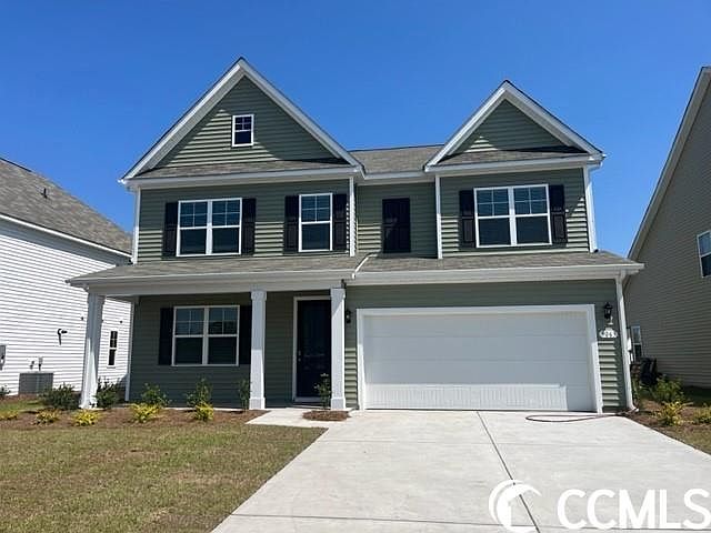 This popular plan brings functionality and style together! Incredible curb appeal is an understatement given the stacked front porches and tall entry door with glass. Once inside, wide plank laminate wood flooring creates an inviting space and numerous windows bring in fantastic natural light. Off the entry is a spacious flex room with French doors that would make a great home office or formal dining room. The large gourmet kitchen boasts quartz countertops, an oversized island, stainless Whirlpool appliances, a walk-in pantry, and a gorgeous Butler's pantry. Sliding glass doors off the dining area leads to the rear screen porch! Spacious bedroom and full bathroom on the first floor is perfect for guests visiting you at the beach. Upstairs you will find the grand primary bedroom suite with a cozy sitting room, huge walk-in closet that connects to the laundry room, and en suite bath with large separate vanities, linen closet, garden tub and 5 ft shower! This home is located in the new natural gas community in Carolina Forest! The Parks of Carolina Forest is a picturesque setting of ponds, an amazing amenity center, and park of the majestic "Ten Oaks" with a walking trail to get to the Carolina Forest library. *Photos and virtual tour are of a similar Harbor Oak floorplan. (Home and community information, including pricing, included features, terms, availability and amenities, are subject to change prior to sale at any time without notice or obligation. Square footages are approximate. Pictures, photographs, colors, features, and sizes are for illustration purposes only and will vary from the homes as built. Equal housing opportunity builder.)