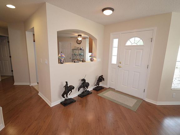 This beautifully updated Sheffield model home is located in the much sought after gated 55+ golf community of On Top of the World. To your right upon entry is the spacious eat-in Kitchen with upgraded Premier cabinets with crown molding, pantry, gas range, and pass-thru counter overlooking the large combination Living/Dining Room. A large slider opens to the enclosed insulated Lanai that features tinted acrylic windows, custom solar shades, lighted fan, and all-weather carpet. A large paver patio is at the back of the home and is surrounded by landscaping. The split bedroom plan features the Master Suite in the back right of the home, provides His & Her closets, and Master Bath with step-in Shower. The Den/Office and Guest Bedroom are located in the front right of the home and are joined by a common hallway and Guest Bath. Den/Office can easily be made in to a 3rd Bedroom. Home features engineered hardwood flooring throughout main living areas, bedrooms and den, plantation shutters in the Guest Bedroom, Den and Kitchen, wood blinds, neutral colors throughout, professionally landscaped, rocked yard for water conservation and easy maintenance, split bedroom floor plan, 2-car Garage with garage screen, pull-down stairs for attic access, and more!