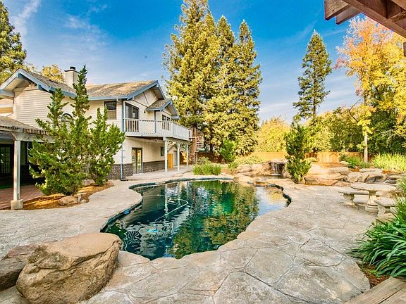 Nestled among the magnificent redwoods, this stunning home is ready for your family to make unforgettable memories. This spacious home features fresh interior paint, new wood floors/carpet, updated kitchen w/ Thermador appliances, quartz countertops, separate formal dining, family and living room w/wet bar and the large bedrooms are also a plus. The master suite shares a sitting room/office w/built in bookshelves. Oh did I mention the park-like backyard with a stunning pool and waterfalls? No HOA and only $160/year in Direct Levy local taxes.