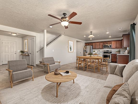 Tucked away in the new section of Charter Pointe with quick access off Maple Grove, this nearly-new home offers the perfect blend of convenience and privacy. With no rear neighbors and a rare oversized backyard, you’ll enjoy unobstructed mountain views directly from your patio—the perfect spot to enjoy your morning coffee or host summer gatherings. Inside, the home has been lightly lived in with neutral finishes throughout, professionally cleaned, and is truly move-in ready. There is a loft space upstairs that would be a perfect tech space or homework station, as well. Charter Pointe offers walking paths, a community pool, and tennis courts for an active lifestyle. Just 2 miles from local favorites like 3 Wood Pizza, Albertsons, Reed’s Dairy, and Walgreens, everything you need is close by. Plus, with the new roundabout at Maple Grove and the Lake Hazel connection to Orchard, getting around the Treasure Valley has never been easier. Washer, dryer, and fridge are negotiable—making your move even simpler!