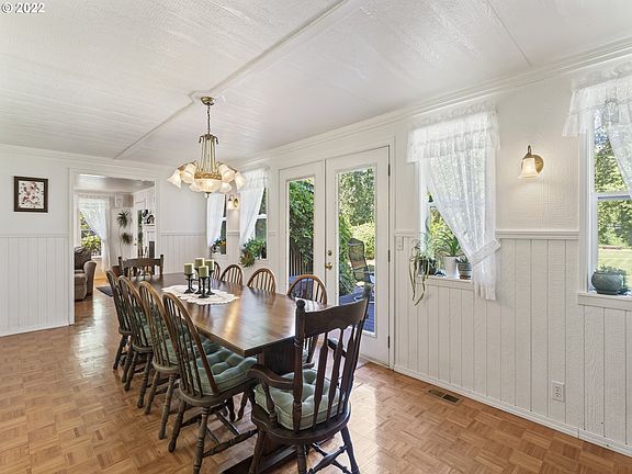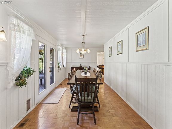 Tudor home sits on almost 1 acre with 182ft of Mckenzie river frontage below the Leaburg Dam. Launch driftboat from back yard.Relax with the wildlife and watch the river as you are dining on fresh caught fish.Kit updates include:granite counters,maple cabs,glasstop oven.Oak parkay floors.Large formal Dining.Primary has access to deck with river views and two closets.Composite decking with Hot tub.Huge yard,mature landscape,Approx 60x15shop.One of a Kind riverview property,water ritghs.