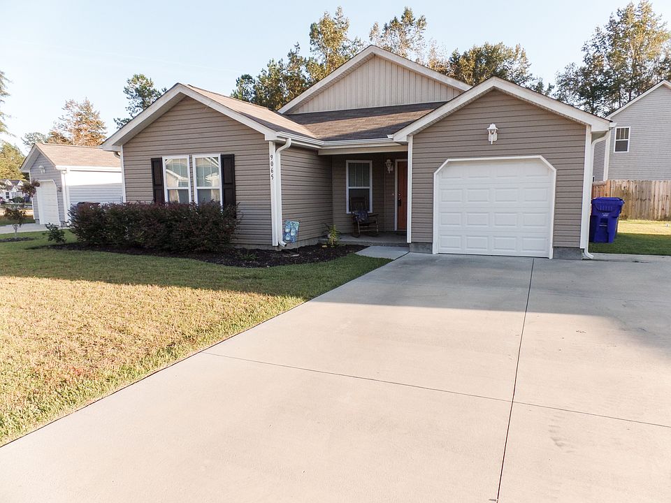 The popular Dakota plan features an open-floor plan, vaulted ceilings with a modified split floor plan giving everyone their own space. The master bedroom features a walk-in closet, master bath with double vanity and is located at the rear of the home to provide privacy. Updated laminate weathered oak flooring throughout the living space/dining/kitchen areas. Large ceramic tile in both bathrooms and the dedicated laundry room. Nice sized triangular Fenced-in back yard great for entertaining/kiddos and/or the 4 legged kiddos! Largest driveway in the neighborhood easily fits 4+ cars and one in the single car garage. Quiet family friendly neighborhood that is small and peaceful. Features a nature trail at the end of the street.
