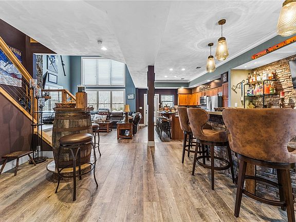 Escape the city and head to the mountains in this nicely appointed ski home with flowing, open floor plan with Loft. Updates include newer kitchen, baths and luxury vinyl flooring. Living room boasts a stone floor to ceiling wood burning fireplace. The dining room has been re-purposed to a bar for entertaining, enjoy the large deck for outdoor entertaining and relaxing while enjoying the long views. All homeowners enjoy two summer recreation areas with swimming pools, hot tubs, tennis, basketball and volley ball courts, and child's play areas. Shuttle service to the Seven Springs Resort and Spa. New Roof in 2022, Replaced floors in 2020, Totally remodeled the bathrooms in 2020. Painted the exterior of the home 2022, replaced windows on the 1st floor in 2021, painted the entire interior of the home in 2020. HOA Fee covers the costs of snow removal on the private roads and walkways of the community.