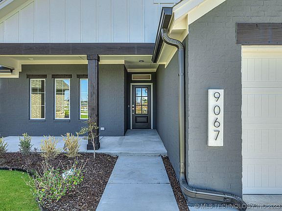 *Reduced more than $26k* Step into this stunning home through a welcoming open entryway, filled with abundant natural light, connecting the mudroom, kitchen, study, and bedrooms. The kitchen features a large island, perfect for gathering and quartz countertops, a farmhouse sink, and built-in appliances, including a gas range. Enter the living room, revealing a cathedral ceiling with an elegant wooden beam gracefully spanning its center, complemented by a charming shiplap gas fireplace and warm wood flooring throughout. Retreat to the generously sized primary bedroom, featuring a luxurious en-suite bath complete with quartz countertop double vanities, a freestanding tub, and a spacious tiled shower. Not to be missed, this home also offers a walk-in primary closet, offering room for all your seasonal storage needs. New homes in this sought-after suburb of Tulsa offer homeowners the perfect balance of city life and community comfort. With future amenities like parks and splash pads, Bixby Village is the perfect place to find your dream home. Located across the street from the highly regarded Bixby Central Intermediate School and High School, the location could not be better for raising a family. Included features: * Peace-of-mind warranties * 10-year structural warranty * Guaranteed heating and cooling usage on most Ideal homes * Fully landscaped front & backyard * Fully fenced backyard. Floorplan may differ slightly from completed home.