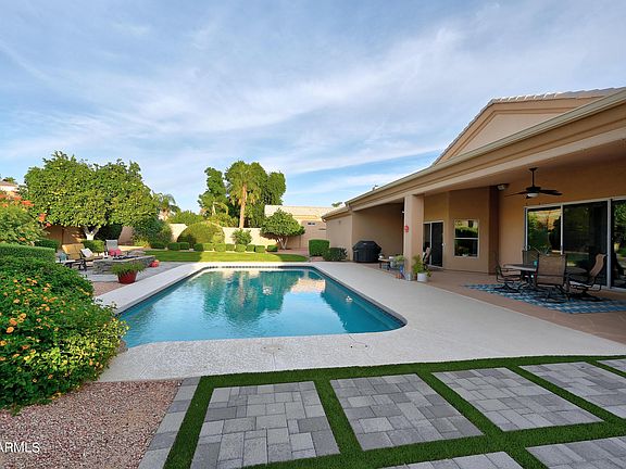 Located in the exclusive enclave of Scottsdale Mountain View Estates. Beautifully remodeled in & out! Ready for you to move in. Easy care tile floors & new Karastan carpet. Remodeled kitchen & wet bar have new Quartsite counters, the pantry has pull out shelves, the Chef in your family will love the 5 burner gas cooktop, 2 Dacor convection ovens, a warming drawer, convection microwave, Sub Zero fridge & more! A new 3 panel sliding door at the family room brings the outside in! Escape to the master suite, with separate tub and shower, double sinks, large walk-in closet and door to the resort like backyard! Relax under the covered patio, or take a swim in the resurfaced pool w/new tile. Enjoy sunsets by the gas firepit under our star filled sky! Click on MORE for additional details.... Every bedroom has a walk in closet! There is a gas fireplace in the family room & master bedroom. 2020 New Water Softener. 2021 Instant hot & cold at kitchen sink. 2019 new vent fan at kitchen island. Skylights in the 2 guest baths and laundry room. Interior was repainted including doors, baseboards & ceilings! The 3 car garage has new garage doors, built-in cabinets, a workbench and overhead storage racks! NOW ABOUT THE RESORT LIKE YARD!!! Sparkling pool has been resurfaced, including new tile. The waterfall has been enhanced with additional boulders. The pool decking has been repainted. New paver patio with rectangular gas firepit is at the north side of the pool, looking toward the covered patio & home. New paver/turf lounging patio at the west side of the pool is the perfect place to unwind as you watch our magnificent sunsets. There is a gas line at the east side of the main patio for your BBQ. Spectacular large ficus tree and a lime tree were added to the landscape along with accent light to enjoy relaxing or entertaining outdoors! The front yard landscaping was also enhanced with a new ficus tree, additional landscaping rock and accent lighting. Replaced outside water valves.
