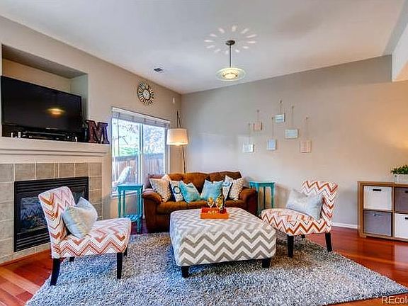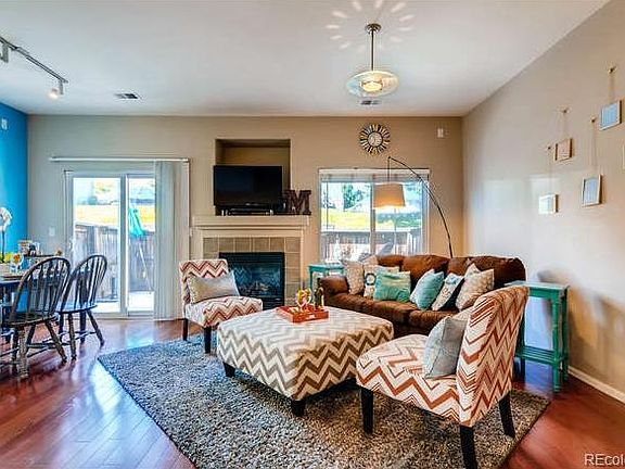 This light and bright corner unit in Autumn Creek brings all that you want to the table and more. Gleaming engineered floors from the entrance through to the living and dining area. A gas fireplace will keep you cozy on those brisk Colorado nights. Open and inviting and if you like to entertain, this main floor plan is for you. The kitchen, dining and living area create the perfect entertaining space for all of your friends. The living area has already been wired for surround sound, bring those speakers. Two large picture windows and the sliding glass doors enhance the lighting and allow you to see the big patio area. The kitchen has solid surface granite countertops, a stainless steel refrigerator, large pantry space, under cabinet lighting, newer upgraded kitchen faucet. The half bath and laundry area complete the main level. Upstairs there are two large bedrooms with walk in closets and ensuite bathrooms. Nothing to do but move in.