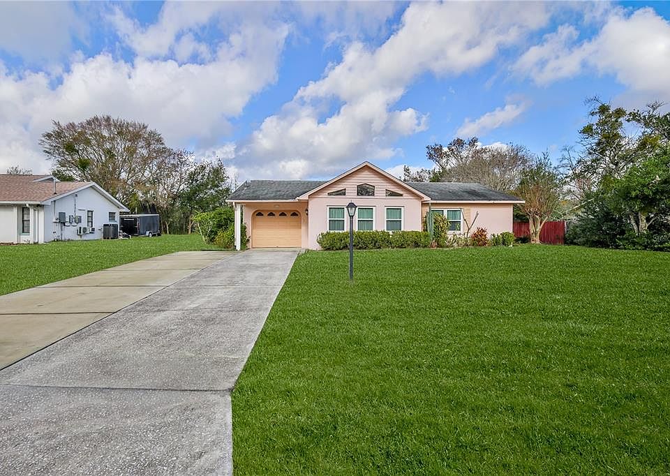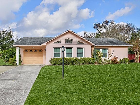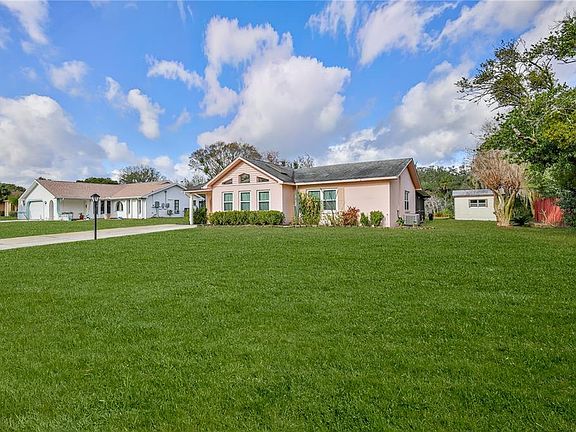 Don't miss out on this quaint 2/2/1 pool home on oversized lot. As you walk through front door you have large living room with laminate flooring and 2 large skylights that bring in lots of light. The kitchen has been remodeled with white kitchen cabinets and stone counter tops. There is an inside laundry area in a closet in the kitchen with a washer and dryer. Both bathrooms feature new vanities , toilets, and in master bath has updated walk in shower. Home also features New Double Pane windows, walk in closets, and ceiling fans. Pool area features screened enclosure and large area for entertaining . For extra storage there is a shed in backyard and large slab to BBQ or have outside seating.
