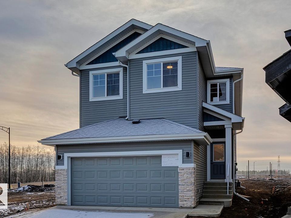 Discover classic elegance with modern function in this beautifully designed Craftsman-style home. A separate side entrance to the basement offers flexible living options, while a convenient fifth bedroom and full bathroom on the main floor are perfect for guests. The gourmet kitchen features a substantial island with a flush eating bar and a standard spice kitchen for enhanced culinary convenience. A generous dining nook is ideal for hosting family meals, and the great room centers around a striking 60" electric fireplace for cozy evenings. Upstairs, the primary bedroom is a true retreat, boasting a luxurious 5-piece ensuite with a freestanding soaker tub. A secondary bedroom offers added privacy with its own walk-through closet and ensuite. Thoughtfully designed with both beauty and practicality, this home is perfect for growing families or those who love to entertain. Photos are representative.