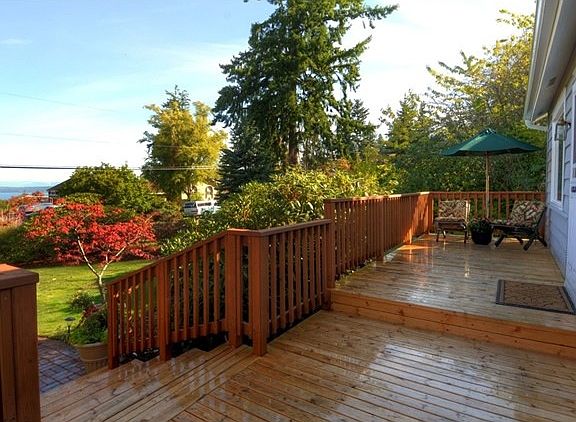 Charming light and bright home with a beautiful view of Puget sound. Spacious, Large Kitchen with a fire place, large front deck with lots of flowers, full fenced back yard. Living room as well has a fire place. Detached garage with a large storage area, new outstanding wooden floors. Pets on a case by case basis - Only one pet allowed Lease Terms: 6 month or 1year lease, $1,875 Sec. Deposit, $40 application fee PER applicant.