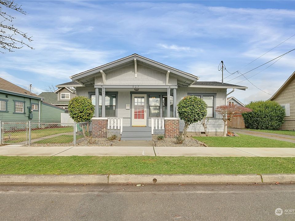 This charming Craftsman has a fun mixture of original character & tasteful updates~The kitchen has an island with an eating area and all appliances stay~the bathroom has an oversized shower/tub~multiple ceiling fans throughout and original hardwood floors~This home has a combination mud room/utility room/pantry with lots of storage space and an additional storage room off the back patio~Well-maintained yard with picture-worthy exotic roses.~carport has been converted into an outdoor living area but can serve as covered parking~ Highly coveted commuter location, just 1 block from Sound Transit Sumner Station! Too cute to pass up!