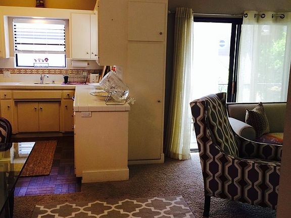 Great location off bay front 2nd floor back unit with lovely balcony. Peek a boo view of water. 4 blocks from main Marine Avenue. Open floor plan includes Kitchen with stainless steel side by side refrigerator, gas stove, microwave & dishwasher. Ceiling fans in vaulted great room/ dining area and both bedrooms. Closets in both bedrooms & hall linen closet too. Hardwood floor, carpeted bedrooms & tile bathroom. White plantation shutters. Shared laundry in garage. Owner pays gas & water
