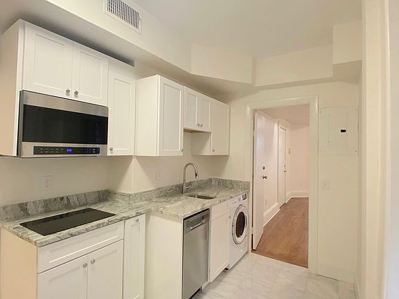 **No oven. Kitchen includes induction stovetop, microwave, dishwasher & washer/dryer. Tenant may purchase their own countertop oven if desired.**