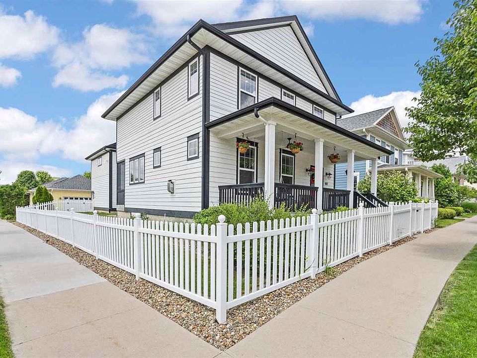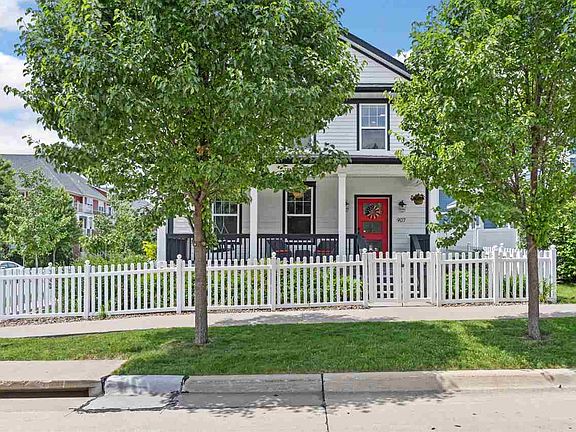 Incredible Location and Amenities Galore in this Stunning 4 bedroom/3.5 bathroom home on a corner lot in The Peninsula! Relax on the Front Porch Swing or Screen Porch. Built-in bookcases, trim around windows and openings. Gas fireplace, wood floors, SS appliances, subway tile backsplash, gas range and decorative range hood. Farmhouse sink and walk-in pantry. Mud room/locker area with room for storage. Large primary suite with built-in dog kennel. Laundry on upper level, washer and dryer on risers stay with property. The basement does not disappoint with Rec Room complete with Wet Bar and full size Fridge. Recessed lighting in bedroom/office with full bath and ample storage space. Updates by Sellers include: Ceiling heater in primary bathroom, window well cover, water softener and RO drinking system upstars and downstairs, high speed fiber internet, new dishwasher in carriage house. HOA covers snow removal on public sidewalk, alley and driveway. 2,314 Total SgFt Above inlcudes Carriage house which is 576 SqFt. Carriage house apartment address is 907 1/2 and is rented for $1,100/month through Dec 31, 2024. Lease to transfer with property. Walking distance to bus line, hiking and biking trails, dog park and Iowa River.
