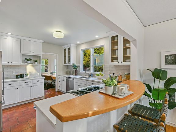 The best of Albany is right out your front door in this upgraded Mediterranean charmer, currently configured as 3BD/2BA with a spacious, finished lower level. Architecturally rich with a hint of Moroccan style, the 1,911 SQFT home welcomes you with a beautiful portico covered porch. Inside the oversized living room, sunlight streams through the large peaked window highlighting the fireplace with preserved vintage tile. Inlaid hardwood floors span into the spacious dining room to the newly upgraded kitchen: classically styled with white cabinets and stainless steel appliances, boasting a great layout for the home chef. The bedroom wing is complete with two bedrooms, including a luxurious primary suite overlooking the garden with an updated en-suite bath, as well as a second full bathroom. Through an adjoining workstation and laundry area, the home’s lower level is currently used as a bedroom, but remains flexible for office, storage or playroom. Outside, a grapevine covered trellis, lemon & plum trees, garden beds, and mature landscaping surround the level backyard ready for entertaining, relaxation, or play. The flexible garage offers many possibilities. Solano Avenue’s lively shopping, dining, and amenities are steps away, with coveted public schools, parks and BART nearby.
