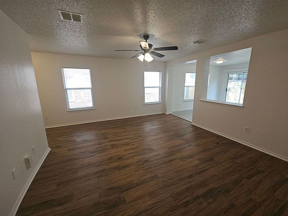 New paintLaminate flooringLarge fenced yardCeiling fansLarge walk in closetSliding doorNice eat in kitchen