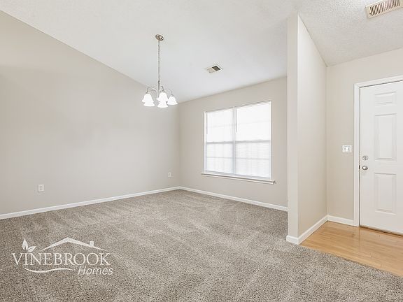 WELCOME HOME! This charming 4BR/2BA ranch-style home in District 6 offers an inviting open floor plan with a split-bedroom layout for added privacy. Tucked away in a peaceful cul-de-sac and lined with lush Leland Cypress trees, this home provides a serene retreat. Step inside to find a cozy den just off the foyerperfect for a home office or sitting area. To the left, two spacious bedrooms share a full bath with a tub/shower combination. A coat closet and linen closet provide extra storage. Love to entertain? The open-concept kitchen is a dream, featuring a built-in desk area, bar seating, and ample cabinetry and counter space. Nearby, the walk-in laundry room comes equipped with washer/dryer hookups and shelving for added convenience. The great room offers plenty of space to gather, flowing seamlessly into the dining area and out onto the patioideal for indoor-outdoor living. The master suite, located just off the great room, provides a private oasis with a walk-in closet, vanity with a makeup area, and a separate garden tub and shower. Don't wait907 Courtney Place Dr won't last long at this price! Submit your application today on the Vinebrook Homes website, and once approved, we'll schedule your tour. Homes must be occupied within 10 business days of approval. Quoted security deposit reflects base amount. Security deposit subject to change based on application screening results.